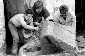 Habitantes de la colonia El Triunfo continúan limpiando sus hogares y desechan los muebles destruidos por la inundación de aguas negras Ť Foto: José Carlo González