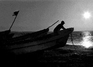 Un pescador recoge sus instrumentos de trabajo después de una ardua jornada en Boca del Río Ť Foto: Tomás Bravo