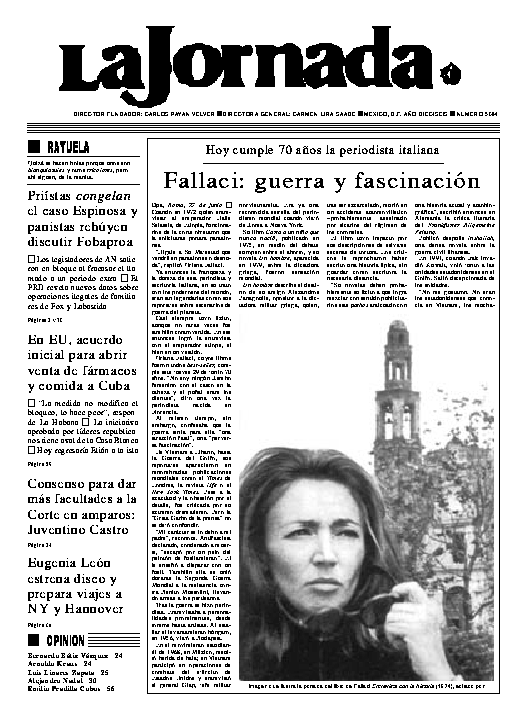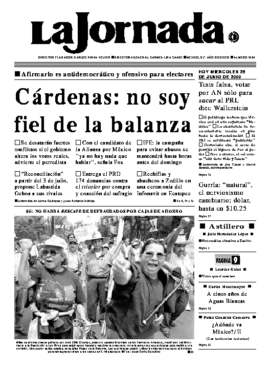 La Jornada, Coordinación de Sistemas Francisco Petrarca 118, Col. Chapultepec Morales, delegación Miguel Hidalgo México D.F. C.P. 11570 Teléfono (525) 262-43-00, FAX (525) 262-43-56 y 262-43-54