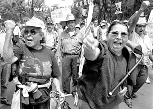 Miles de ahorradores engañados por José Cirilo Ocampo, presunto cerebro financiero de los hermanos Amezcua, marcharon del Monumento a la Revolución a Los Pinos para exigir apoyo federal y recobrar sus recursos. Ante la tardanza de autoridades para recibir a una comisión, bloquearon varias arterias, entre ellas Paseo de la Reforma. Las autoridades prevén utilizar los bienes incautados al indiciado para reintegrar el dinero a los cerca de 40 mil afectados Ť Foto: José Carlo González