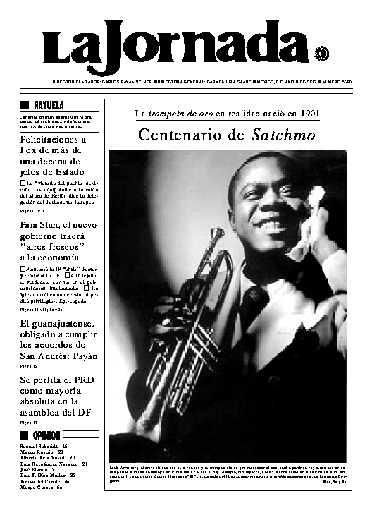 La Jornada, Coordinación de Sistemas Francisco Petrarca 118, Col. Chapultepec Morales, delegación Miguel Hidalgo México D.F. C.P. 11570 Teléfono (525) 262-43-00, FAX (525) 262-43-56 y 262-43-54