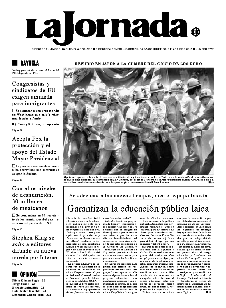 La Jornada, Coordinación de Sistemas Francisco Petrarca 118, Col. Chapultepec Morales, delegación Miguel Hidalgo México D.F. C.P. 11570 Teléfono (525) 262-43-00, FAX (525) 262-43-56 y 262-43-54