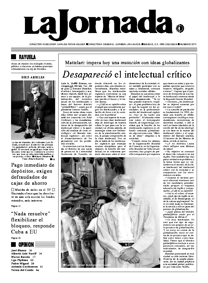 Encabezó Zedillo un ``periodo democratizador'': Diódoro Carrasco