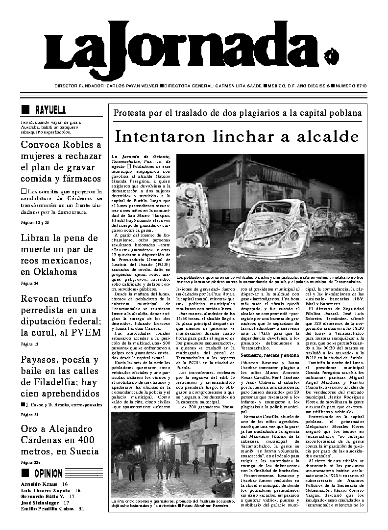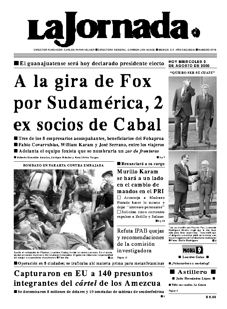 La Jornada, Coordinación de Sistemas Francisco Petrarca 118, Col. Chapultepec Morales, delegación Miguel Hidalgo México D.F. C.P. 11570 Teléfono (525) 262-43-00, FAX (525) 262-43-56 y 262-43-54