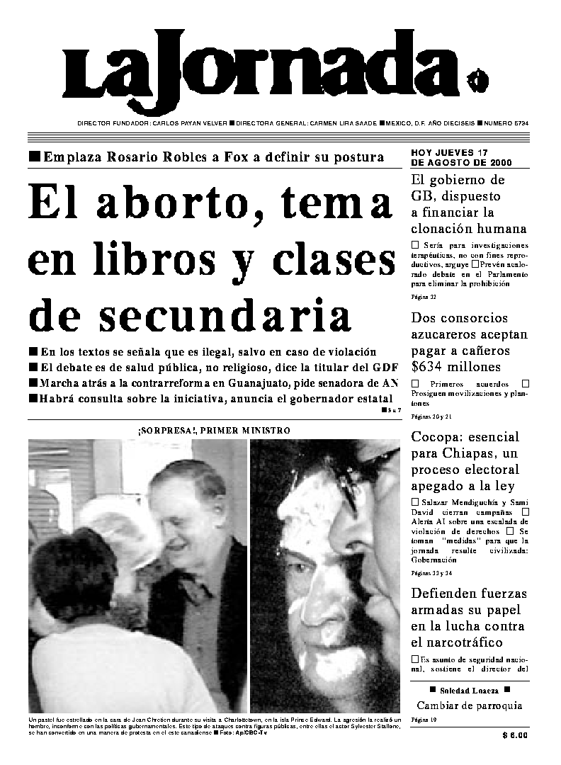 Un pastel fue estrellado en la cara de Jean Chretien durante su visita a Charlottetown, en la isla Prince Edward. La agresión la realizó un hombre, inconforme con las políticas gubernamentales. Este tipo de ataques contra figuras públicas, entre ellas el actor Sylvester Stallone, se han convertido en una manera de protesta en el este canadiense Ť Foto: Ap/CBC-Tv