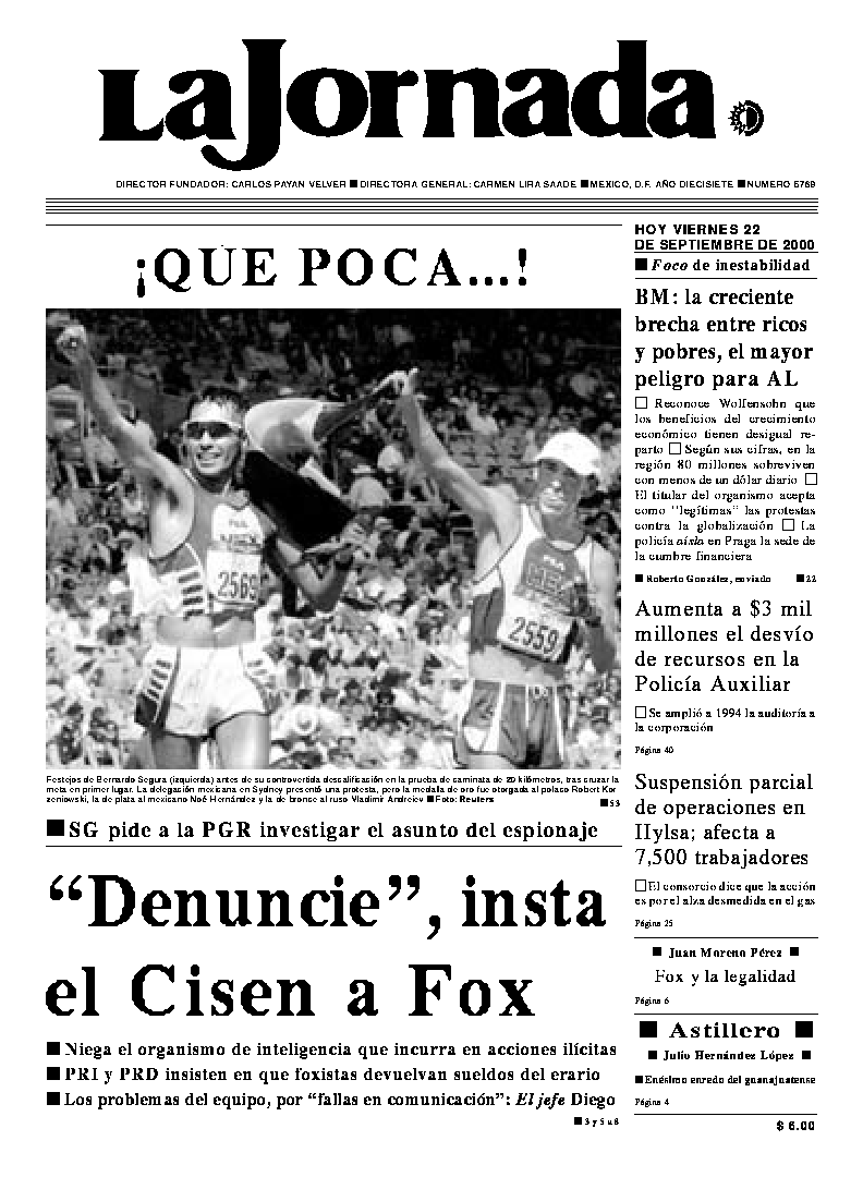 La Jornada, Coordinación de Sistemas Francisco Petrarca 118, Col. Chapultepec Morales, delegación Miguel Hidalgo México D.F. C.P. 11570 Teléfono (525) 262-43-00, FAX (525) 262-43-56 y 262-43-54