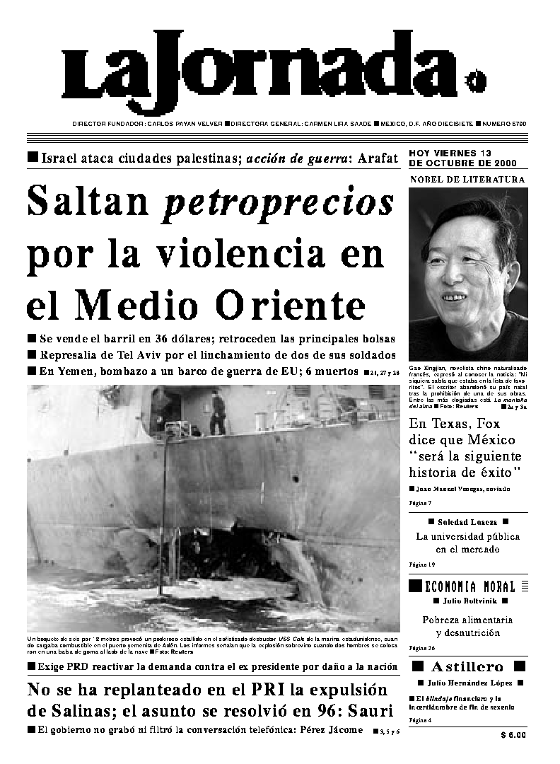 La Jornada, Coordinación de Sistemas Francisco Petrarca 118, Col. Chapultepec Morales, delegación Miguel Hidalgo México D.F. C.P. 11570 Teléfono (525) 262-43-00, FAX (525) 262-43-56 y 262-43-54