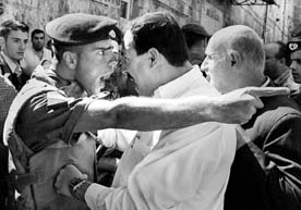 investigación; en la imagen, un policía israelí niega el paso a fieles