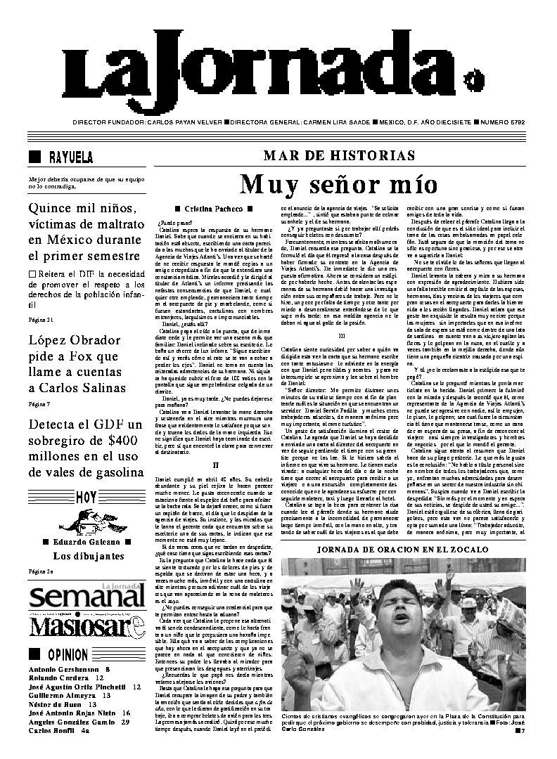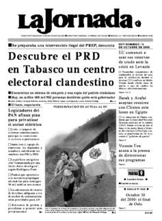 La Jornada, Coordinación de Sistemas Francisco Petrarca 118, Col. Chapultepec Morales, delegación Miguel Hidalgo México D.F. C.P. 11570 Teléfono (525) 262-43-00, FAX (525) 262-43-56 y 262-43-54