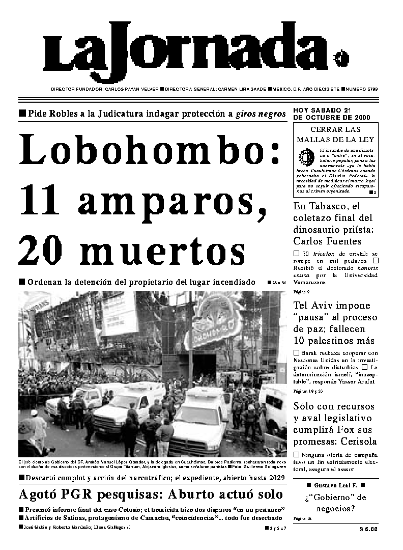 La Jornada, Coordinación de Sistemas Francisco Petrarca 118, Col. Chapultepec Morales, delegación Miguel Hidalgo México D.F. C.P. 11570 Teléfono (525) 262-43-00, FAX (525) 262-43-56 y 262-43-54
