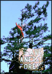 Luna, la secoya de mil años de edad y en perfecto estado de salud, está en una porción de bosque que constituye un pobre tres por ciento de lo que fue un área de dos millones de acres, propiedad de la Pacific Lumber Company. Ninguna manifestación en contra de esta compañía maderera había tenido resultados; en primer lugar porque la compañía es dueña de los bosques y legalmente puede hacer con ellos lo que quiera. La Pacific Lumber Company no es una empresa que se caracterice por su paciencia; en una manifestación del grupo Earth First!, un joven de veinticuatro años, David Gypsy Chain, murió cuando un talador de la compañía, molesto porque los activistas no lo dejaban trabajar en paz, derribó un árbol en su dirección. Una rama fracturó el cráneo de Gypsy Chain, y a pesar de que existe un video que muestra al talador amenazando a los manifestantes, la compañía pudo evadir los cargos. Así que cuando Julia Hill subió a Luna, sabía que lo que estaba haciendo no era un juego, aunque tampoco sabía que se iba a quedar arriba dos años. Habrá quien piense que una acción como ésta es pueril; una niñería destinada a llamar la atención. Pero para Julia Hill y sus compañeros (un plantón de esta naturaleza requiere de un equipo de varias personas dispuestas a que sus vidas giren alrededor de lo que sucede con quien está en el árbol) era el último recurso. Los otros plantones, la muerte de Gypsy Chain, las cartas, los artículos, habían sido inútiles. Por supuesto que Julia Hill quería llamar la atención; si algo convenció a la Pacific Lumber Company de no seguir utilizando helicópteros, tiros al aire y leñadores amenazantes para disuadir a Julia, fueron las celebridades Joan Baez, Woody Harrelson, Bonnie Raitt que de cuando en cuando se atrevían a subir sesenta metros de altura para pasar la noche en una plataforma de tres metros de ancho por cuatro de largo.