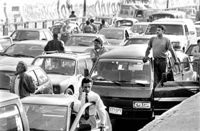 policías auxiliares provocó un congestionamiento de varias horas. Los