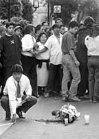 Sobre el pavimento de Bucareli, muy cerca de las oficinas de la