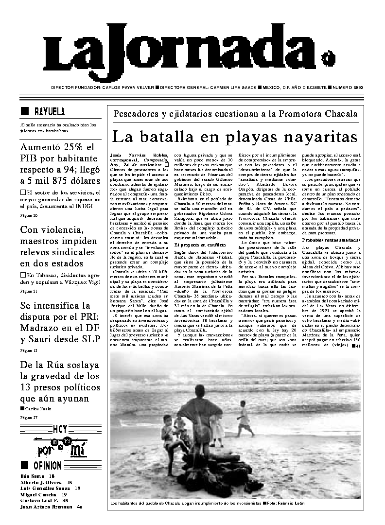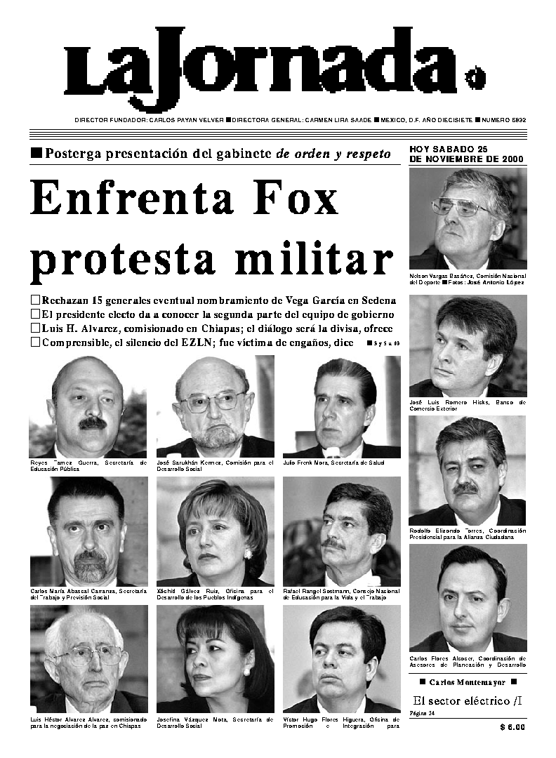 La Jornada, Coordinación de Sistemas Francisco Petrarca 118, Col. Chapultepec Morales, delegación Miguel Hidalgo México D.F. C.P. 11570 Teléfono (525) 262-43-00, FAX (525) 262-43-56 y 262-43-54