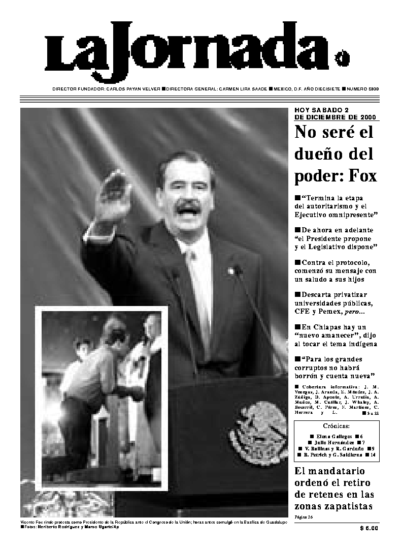 Vicente Fox rinde protesta como Presidente de la República ante el Congreso de la Unión; horas antes comulgó en la Basílica de Guadalupe Ť Fotos: