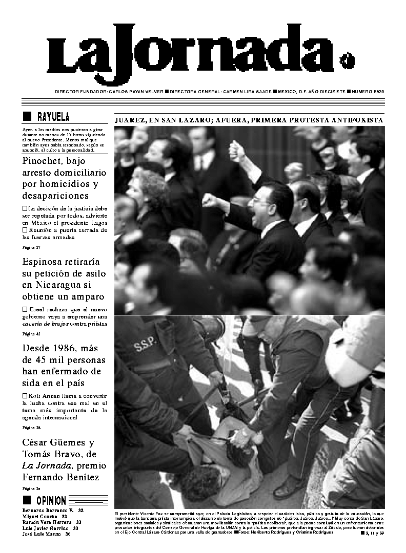 La Jornada, Coordinación de Sistemas Francisco Petrarca 118, Col. Chapultepec Morales, delegación Miguel Hidalgo México D.F. C.P. 11570 Teléfono (525) 262-43-00, FAX (525) 262-43-56 y 262-43-54