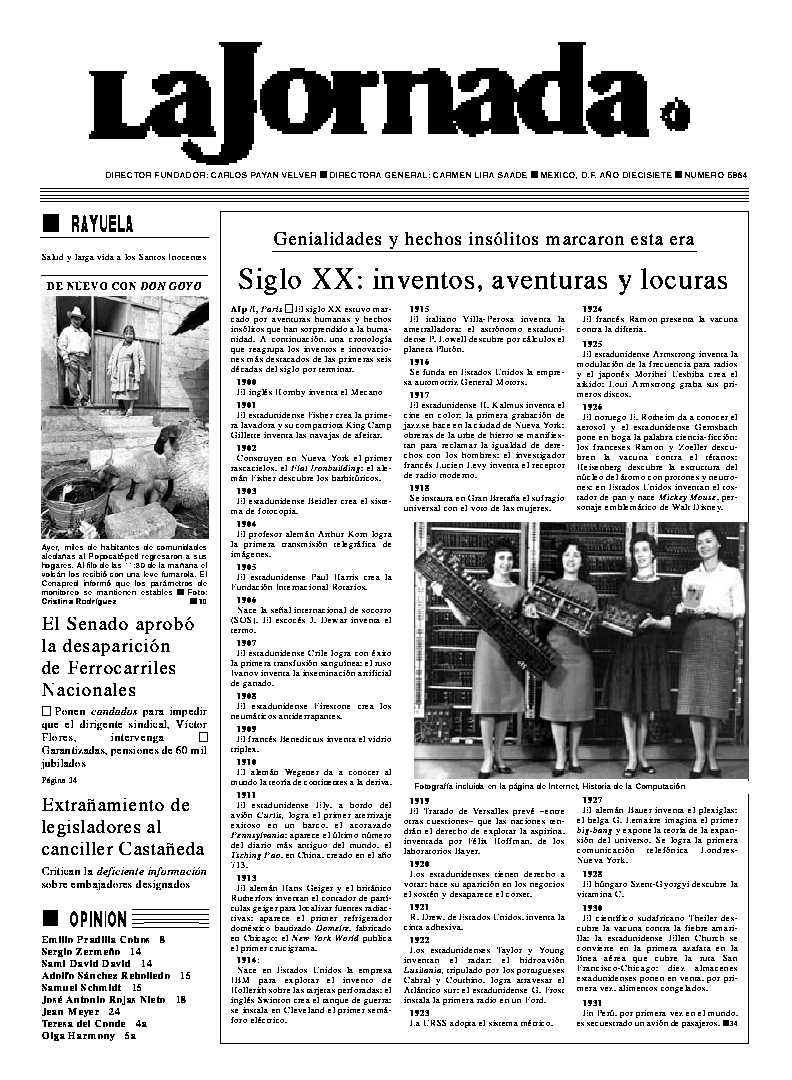 La Jornada, Coordinación de Sistemas Francisco Petrarca 118, Col. Chapultepec Morales, delegación Miguel Hidalgo México D.F. C.P. 11570 Teléfono (525) 262-43-00, FAX (525) 262-43-56 y 262-43-54