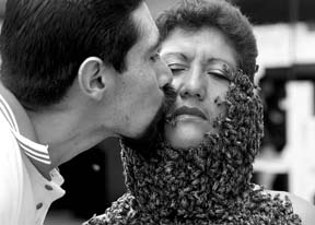 años, besa a su esposa Guadalupe Miranda, de 42, durante una