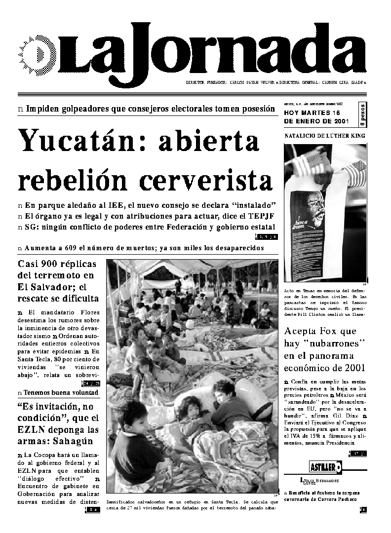 La Jornada, Coordinación de Sistemas Francisco Petrarca 118, Col. Chapultepec Morales, delegación Miguel Hidalgo México D.F. C.P. 11570 Teléfono (525) 262-43-00, FAX (525) 262-43-56 y 262-43-54
