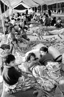 Damnificados salvadoreños en un refugio en Santa Tecla. Se calcula que cerca de 27 mil viviendas fueron dañadas por el terremoto del pasado sábado FOTO Ap