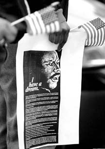 Acto en Texas en memoria del defensor de los derechos civiles. En las pancartas se imprimió el famoso discurso Tengo un sueño. El presidente Bill Clinton realizó un llamado para poner fin a la ``práctica intolerable'' del racismo FOTO AP