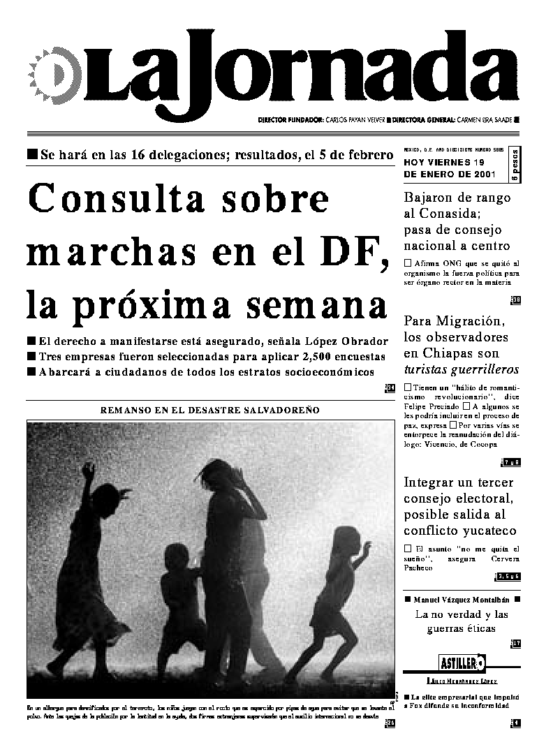 La Jornada, Coordinación de Sistemas Francisco Petrarca 118, Col. Chapultepec Morales, delegación Miguel Hidalgo México D.F. C.P. 11570 Teléfono (525) 262-43-00, FAX (525) 262-43-56 y 262-43-54