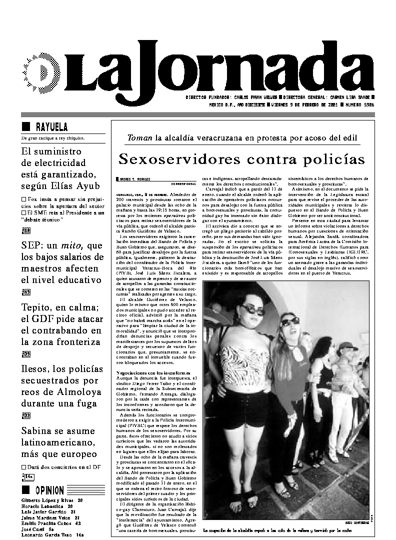 La Jornada, Coordinación de Sistemas Francisco Petrarca 118, Col. Chapultepec Morales, delegación Miguel Hidalgo México D.F. C.P. 11570 Teléfono (525) 262-43-00, FAX (525) 262-43-56 y 262-43-54
