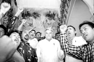 El gobernador Víctor Cervera Pacheco, rodeado de simpatizantes, después de que llamó a formar un frente para ``defender'' la soberanía de Yucatán FOTO POR ESTO