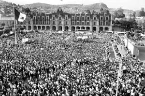 la caravana zapatista se congregaron en la Plaza de los Mártires de
