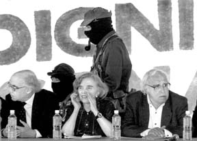 José Saramago, Elena Poniatowska, Marcos y Carlos Monsiváis en el