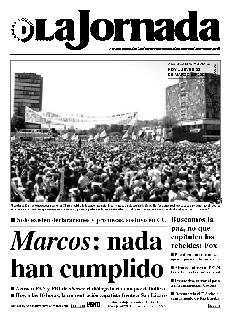 delegación zapatista. En su mensaje, el subcomandante Marcos dijo: