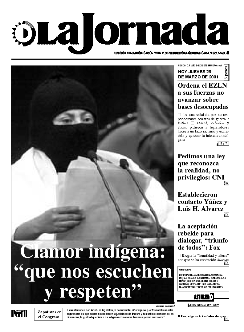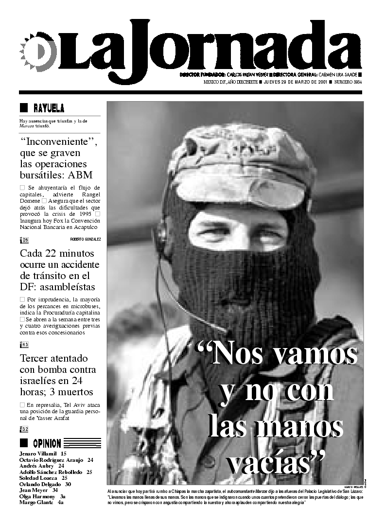 La Jornada, Coordinación de Sistemas Francisco Petrarca 118, Col. Chapultepec Morales, delegación Miguel Hidalgo México D.F. C.P. 11570 Teléfono (525) 262-43-00, FAX (525) 262-43-56 y 262-43-54