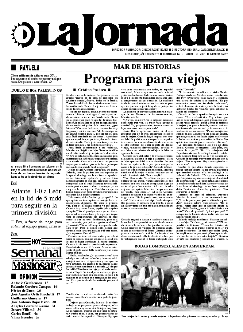 La Jornada, Coordinación de Sistemas Francisco Petrarca 118, Col. Chapultepec Morales, delegación Miguel Hidalgo México D.F. C.P. 11570 Teléfono (525) 262-43-00, FAX (525) 262-43-56 y 262-43-54