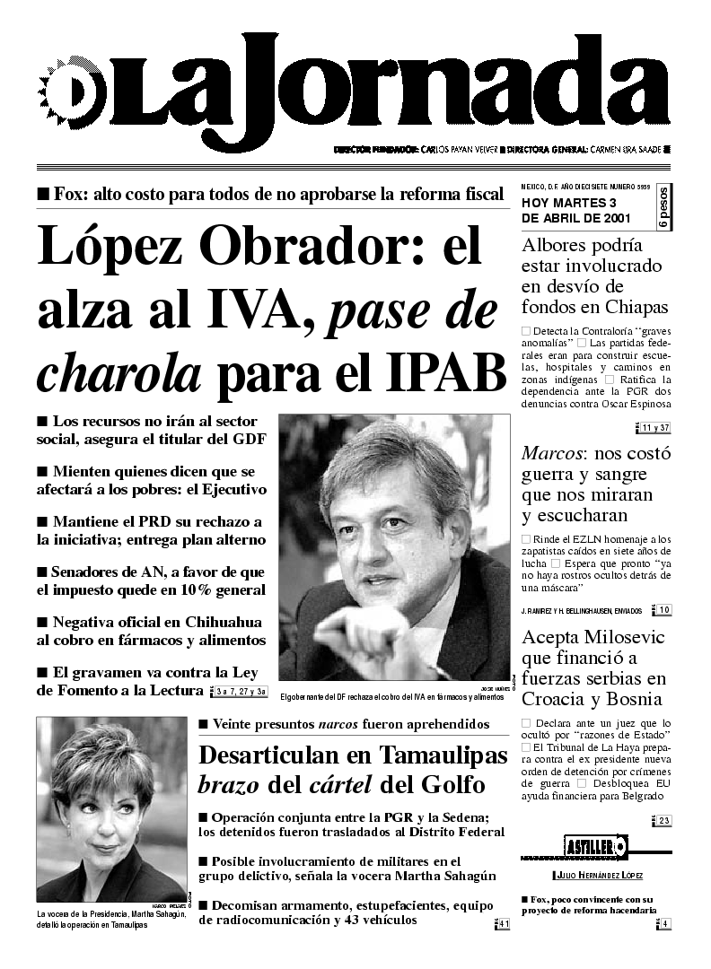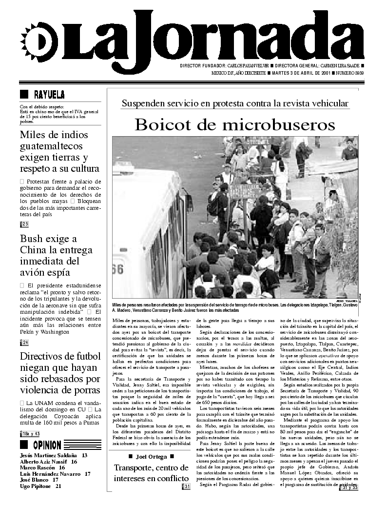 La Jornada, Coordinación de Sistemas Francisco Petrarca 118, Col. Chapultepec Morales, delegación Miguel Hidalgo México D.F. C.P. 11570 Teléfono (525) 262-43-00, FAX (525) 262-43-56 y 262-43-54