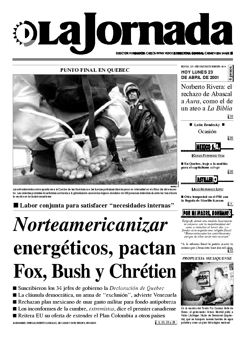 Suscribieron los 34 jefes de gobierno la Declaración de Quebec
