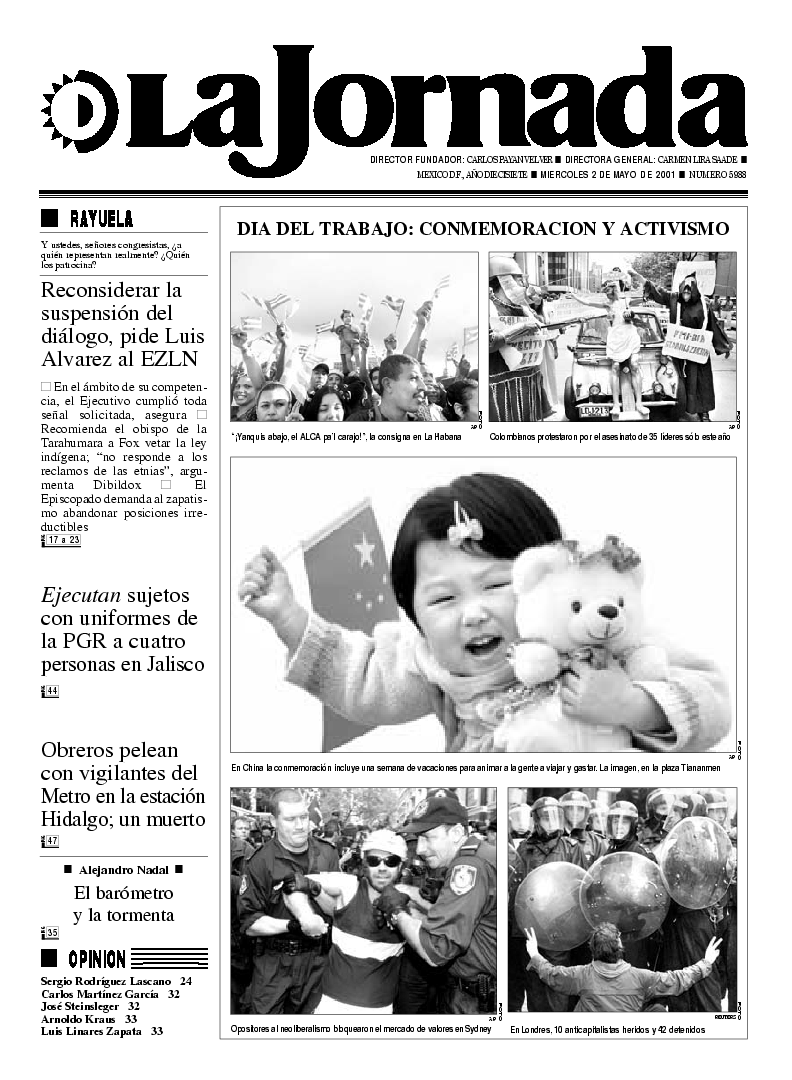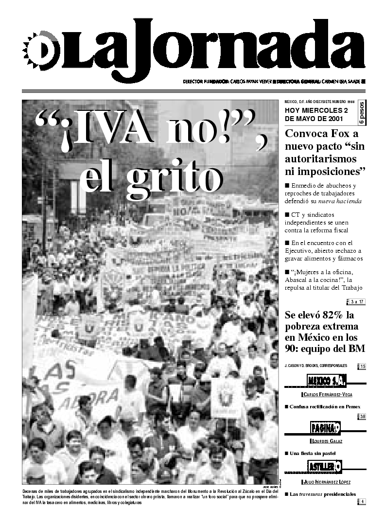 La Jornada, Coordinación de Sistemas Francisco Petrarca 118, Col. Chapultepec Morales, delegación Miguel Hidalgo México D.F. C.P. 11570 Teléfono (525) 262-43-00, FAX (525) 262-43-56 y 262-43-54