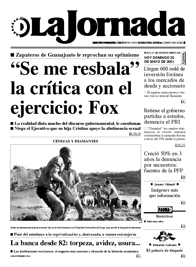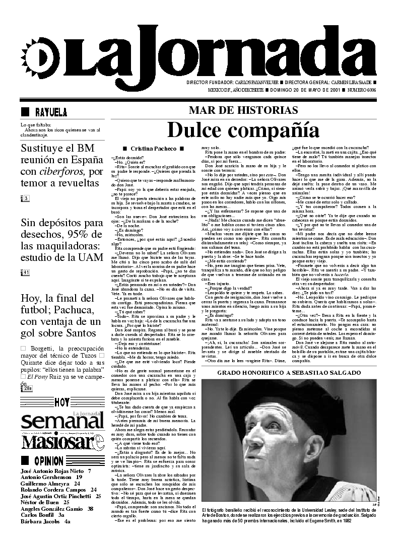 La Jornada, Coordinación de Sistemas Francisco Petrarca 118, Col. Chapultepec Morales, delegación Miguel Hidalgo México D.F. C.P. 11570 Teléfono (525) 262-43-00, FAX (525) 262-43-56 y 262-43-54