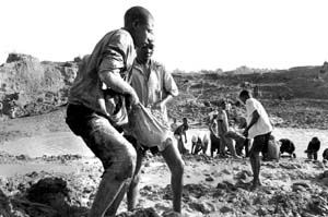 Suelen ser adolescentes quienes remueven lodo en la mina Kabuebue, en la República Democrática de Congo, para permitir la búsqueda de diamantes FOTO AP