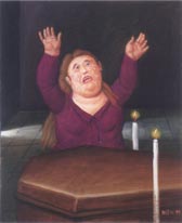 Ya entrada la década de los sesenta se consolida su estilo muy personal, con esa superficie lisa y la pincelada fina y rigurosa que ha seguido trabajando a lo largo de cuatro décadas. ¿Cómo se dio ese paso? Lentamente. Uno va volviéndose más estricto, más coherente, si se puede decir, más maduro. Al principio quiere uno aglutinar todo lo que ve y le gusta, y luego viene el proceso de renunciación y depuración para que lo aprendido corresponda a una sola idea clara. Dejando a un lado el volumen que es la característica principal de su trabajo, quisiera ahondar en la psicología de sus personajes. Si bien la mayoría de la gente los encuentra divertidos y simpáticos, quizá por su sesgo caricaturesco, a mí me inquietan y algunos me parecen inclusive perturbadores. Yo he tratado, hasta donde me es posible, de no darle una dimensión psicológica a los personajes que pinto, incluso intento que su rostro no refleje ninguna emoción. Por ejemplo, me entusiasma la expresión hacia adentro del arte egipcio, con esas miradas perdidas que no se dirigen hacia ningún sitio. Pienso también en Piero della Francesca, en la escultura griega, o en Madame Cézanne, que no refleja en qué está pensando. Me gusta la no expresión. Yo pongo la misma intención en todos los elementos de la composición, sin hacer énfasis en los rostros de los personajes, de modo que si se ven tristes o contentos, no sé, yo sólo los veo como objetos plásticos. Siempre trabajo de pie, a la altura del ojo, nunca uso escaleras ni me siento en el piso. Este sistema de trabajar a la altura del ojo me da la oportunidad de dedicar la misma energía y concentración en cualquier parte del cuadro. Pero esa no expresividad en los rostros proyecta una actitud. Por ejemplo, la boca fruncida de los personajes evoca cierta arrogancia, sobre todo cuando se trata de figuras del clero, de los altos mandatarios o de la burguesía. Bueno, sí, en esos temas hay una vena satírica pero es secundaria; la preocupación pictórica es más importante. Por el contrario, sus Cristos sí me parecen expresivos... Más bien están como muertos, yo no les veo mucha expresión. Hay un Ecce Homo de 1967 que apenas esboza una sonrisa, pero me parece que refleja paz y ternura, mientras que un pequeño dibujo muy hermoso de 1990 tiene un rostro francamente dolorido. ¡Ah, sí!, es cierto, tienes toda la razón. Ese sí es muy expresivo. Pero son unos cuantos ejemplos. Aparte de lo que, para mí, por su novedad, es el plato fuerte de esta exhibición: la serie sobre la violencia en Colombia. Estos cuadros son como un pequeño testimonio de lo que está sucediendo en mi país. Yo siempre he pugnado por un arte que produzca placer, y aquí recuerdo una frase de Matisse que fue muy criticada en su momento: El arte es una gran silla donde el hombre se sienta para experimentar un momento de placer. Coincido plenamente con ello, pero en esta ocasión no pude dar la espalda a la situación que se vive en Colombia y sentí la necesidad de decir algo. Estas doce obras están fuera del mercado y mi única intención es dejar un vestigio de una situación que espero termine pronto y, finalmente, que estas pinturas queden en un museo colombiano como recuerdo de un momento histórico lamentable. Siempre he predicado que el arte debe dar paz y esta obra, con toda su violencia, es solamente un llamado de atención a la realidad que tenemos frente a nosotros. Nunca he creído que la pintura como arma política sea efectiva. Ahí está el Guernica: la obra maestra del siglo XX y no logró tumbar a Franco. Esta serie es sólo un testimonio y mi interés es seguir pintando mis recuerdos de la infancia y adolescencia. Parte de esta serie, Un consuelo y Madre e hijo, son los únicos cuadros simbólicos que he visto dentro de su extensa producción. Sí, son altamente simbólicos por que ahí no se refleja ninguna situación real y recurrí a la calavera para crear la imagen más estremecedora posible. Los demás personajes provienen de la realidad de todos los días: las madres llorando por sus muertos, el descuartizado, el carro bomba... El colmo del horror. Más allá del valor testimonial de estas pinturas, resalta su calidad plástica. De golpe me recordaron la serie sobre La muerte de Santa Ana de Manuel Rodríguez Lozano, en la que el pequeño formato encierra un gran drama contenido. Actualmente se trabaja muy poco el formato pequeño, más bien todo es gigantesco. Me pareció interesante trabajar esta pequeñas piezas con todo el rigor, la precisión, la fuerza y la composición de los cuadros grandes. De hecho, cuando la gente los ve reproducidos piensa que son telas de grandes dimensiones. En diversas ocasiones usted ha declarado que le importa mucho que su trabajo refleje un alma latinoamericana. Yo le pregunto: ¿la búsqueda en el arte de una identidad específicamente regional no puede convertirse en una limitante?