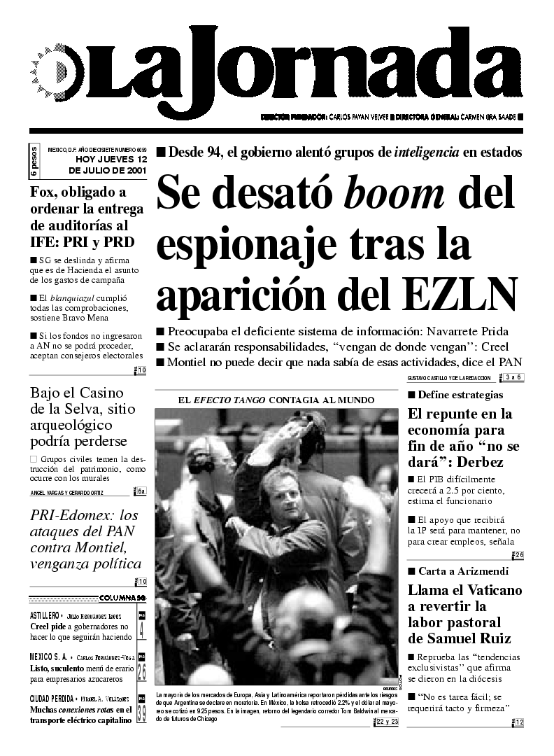 La Jornada, Coordinación de Sistemas Francisco Petrarca 118, Col. Chapultepec Morales, delegación Miguel Hidalgo México D.F. C.P. 11570 Teléfono (525) 262-43-00, FAX (525) 262-43-56 y 262-43-54