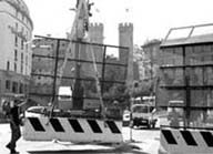 mientras tanto, trabajadores remueven las barreras instaladas en los