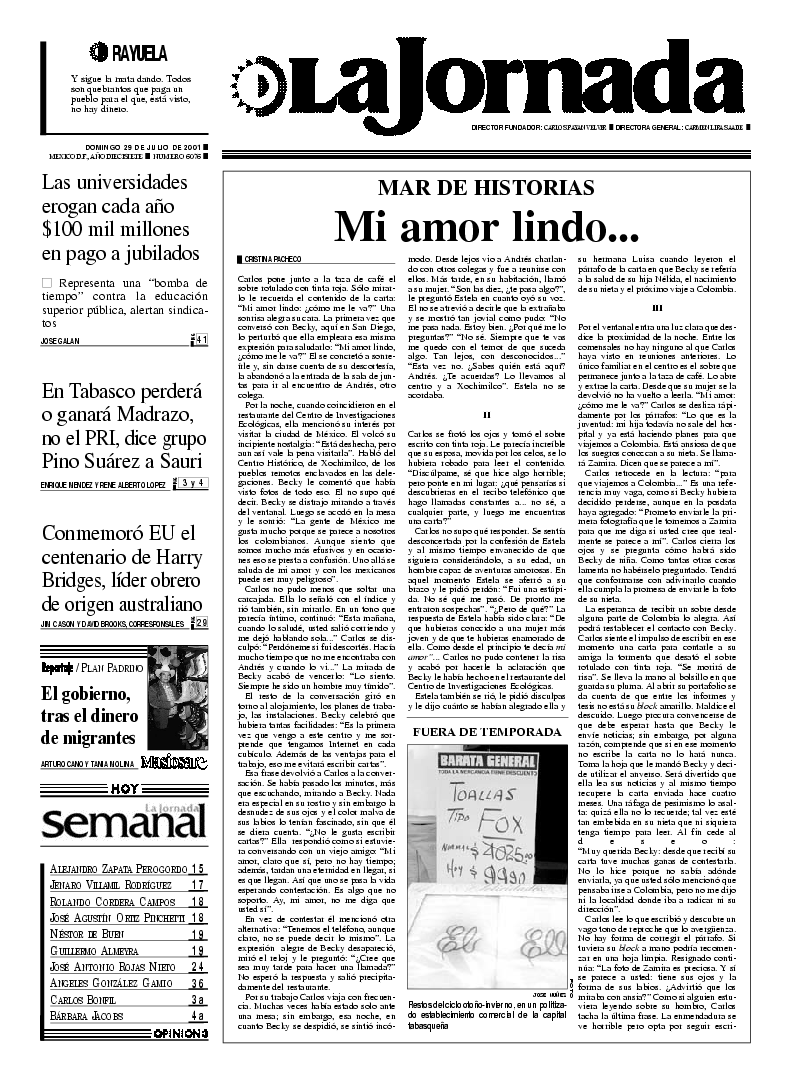 La Jornada, Coordinación de Sistemas Francisco Petrarca 118, Col. Chapultepec Morales, delegación Miguel Hidalgo México D.F. C.P. 11570 Teléfono (525) 262-43-00, FAX (525) 262-43-56 y 262-43-54