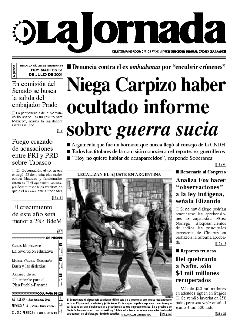 La Jornada, Coordinación de Sistemas Francisco Petrarca 118, Col. Chapultepec Morales, delegación Miguel Hidalgo México D.F. C.P. 11570 Teléfono (525) 262-43-00, FAX (525) 262-43-56 y 262-43-54