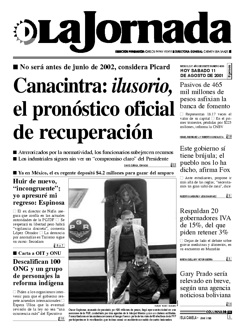 ciudad en una aeronave de la PGR, custodiado por dos agentes de la