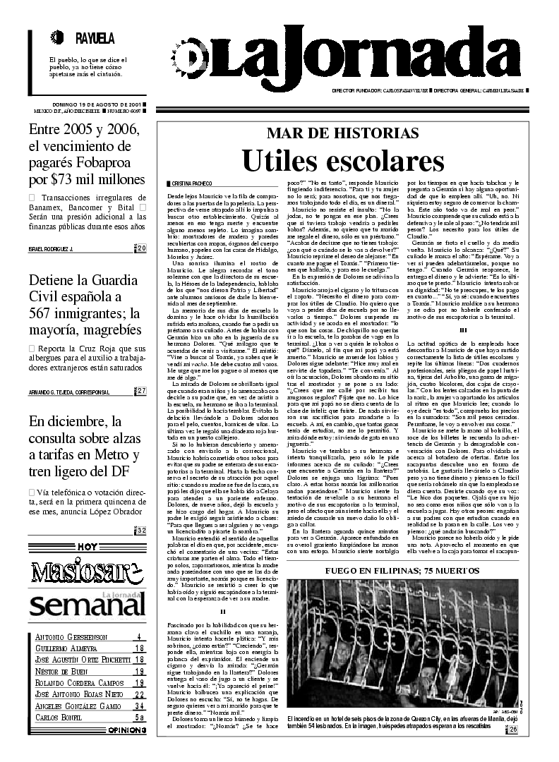 México, D.F. domingo 19 de agosto de 2001