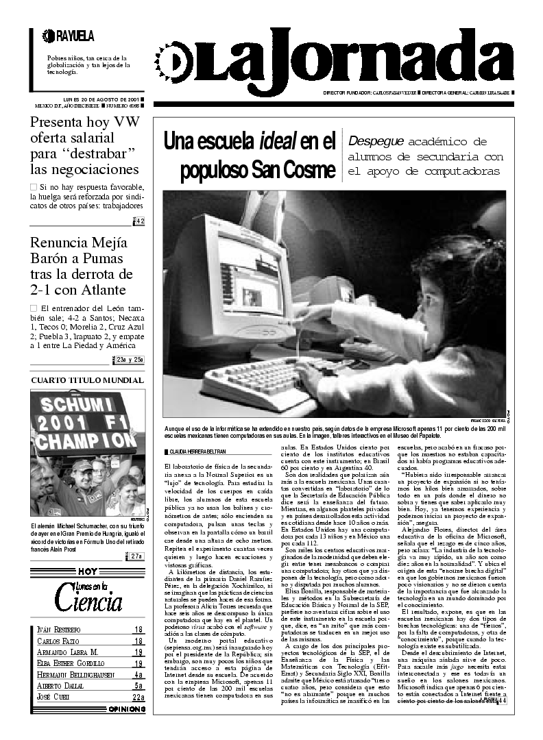 La Jornada, Coordinación de Sistemas Francisco Petrarca 118, Col. Chapultepec Morales, delegación Miguel Hidalgo México D.F. C.P. 11570 Teléfono (525) 262-43-00, FAX (525) 262-43-56 y 262-43-54