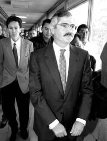 Arribo del ex regente del Distrito Federal a la zona de juzgados del fuero común en el Reclusorio Norte, en donde ayer un juez le notificó el comienzo del juicio en su contra por el desvío de 420 millones de pesos del erario capitalino FOTO JOSE NUÑEZ