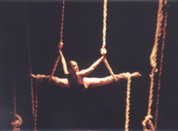 De Humani Corporis, grupo dirigido por Gerardo Hernández, nos trae a escena el dominio espacial junto a un desafío continuo y radical de la gravedad. Hernández se entrenó en artes marciales y en gimnasia olímpica. Poco después se interesó por la danza clásica y por la contemporánea. Como parte de un lento proceso, comenzó a experimentar incorporando todas las técnicas aprendidas a sus propuestas escénicas. El grupo se describe a sí mismo como "un híbrido de atletas de alto rendimiento, bailarines y creadores". A través del uso de estructuras, cuerdas y arneses aunado al empleo de formas dancísticas y acrobáticas, los bailarines recorren la totalidad del escenario: una jaula circular suspendida en el vacío, donde los cuerpos de mujeres y hombres ingresan en la dimensión del cosmos. En primer plano, el cuerpo inerte de una mujer que cuelga de una tela roja, a varios metros del piso. Estas dos imágenes sobrepuestas aparecen como dos extremos de la condición humana enfrentados en un espacio único para exaltar nuestra esencia paradójica: el deseo inmemorial de apropiarnos del espacio, tentativa que lleva a mensurar la infinita pequeñez del ser humano mientras el cuerpo femenino suspendido se agiganta al tocar la emoción que nos provoca la fragilidad humana. Pendientes de telas o de cuerdas, los cuerpos parecen entregarse por completo al espacio: brazos o piernas abiertos en donde la dinámica del control y la destilación de adrenalina son utilizados para proyectar emociones que desembocan en imágenes de gran plasticidad. En las barras, ante el riesgo de caer, las parejas se relacionan en una dependencia casi absoluta. Imágenes donde el arriba y el abajo se trastocan. Seres que caminan en el aire sin llegar jamás hasta el otro que se encuentra en la misma circunstancia. Grupos como Cirque du Soleil han usado antes cuerdas y telas para sus espectáculos; sin embargo, su objetivo es de carácter acrobático o circense. Hernández y su grupo se han propuesto trabajar con estas técnicas corporales para luego transgredirlas y darles un nuevo sentido dancístico y dramatúrgico.