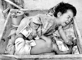 reciben limosnas en un camino cerca de la ciudad paquistana de