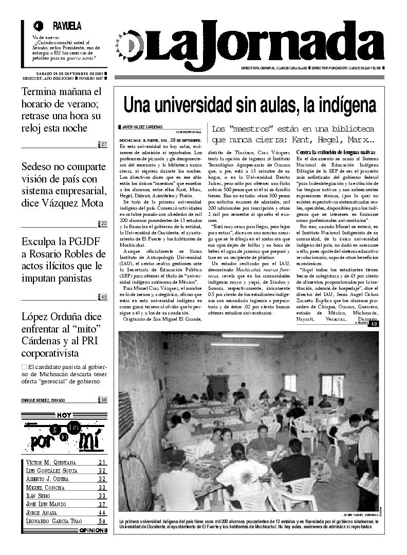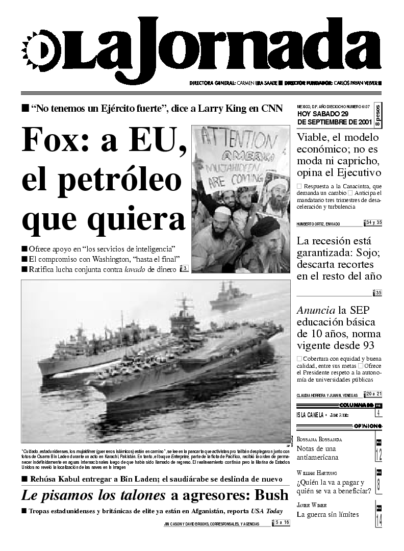 México, D.F. sábado 29 de septiembre de 2001
